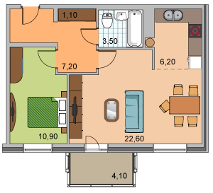 - 10 — однокомнатные 36 м2,