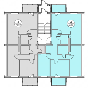 | 3 этаж | 20 4-комн. 84,9 м2 | 21 3-комн. 73,5 м2 | ||